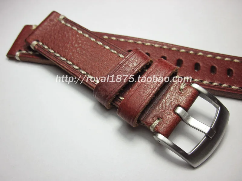 BEST SELLER Luxury Handmade Crazy Horse Genuine Leather Watchbands 20mm Red Brown Retro Strap For U-boat Big Pi