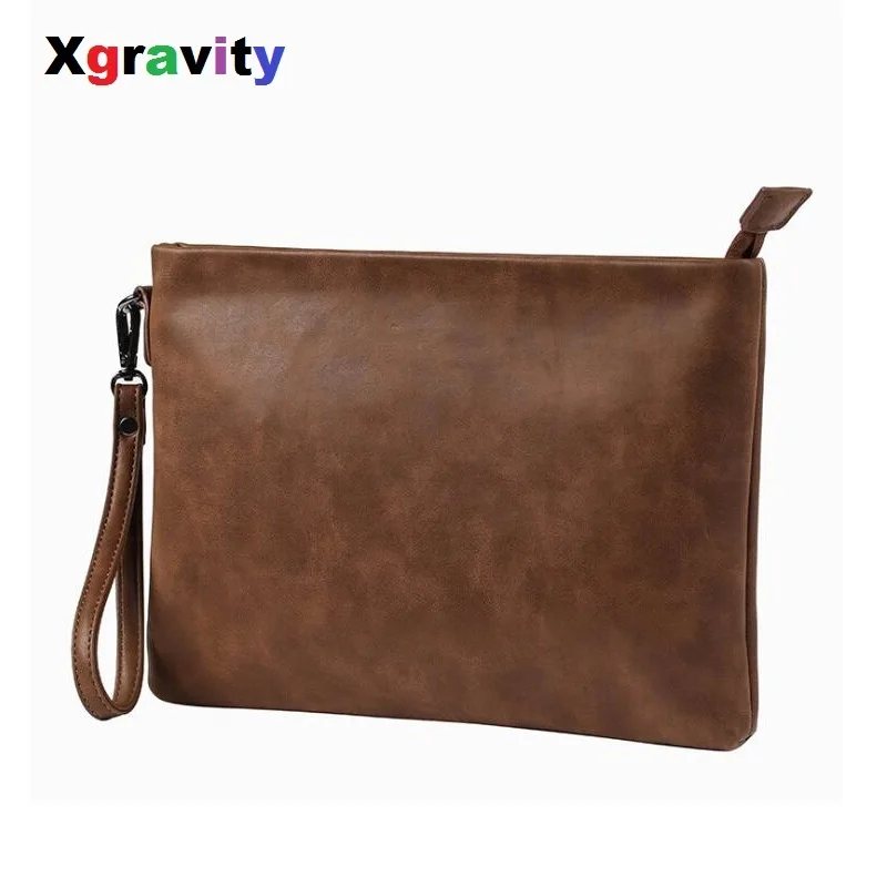 HIGH QUALITY Xgravity Male Casual Bags Fashion Business Men's Crazy Horse Handbags PU Simple Design Clutches Han