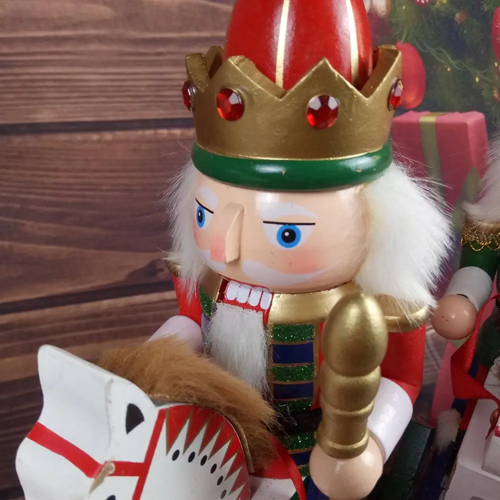 BEST QUALITY 30cm Nutcracker Puppet Rocking Horse Christmas Decorations Nutcracker Wooden Soldier Puppet Kids To