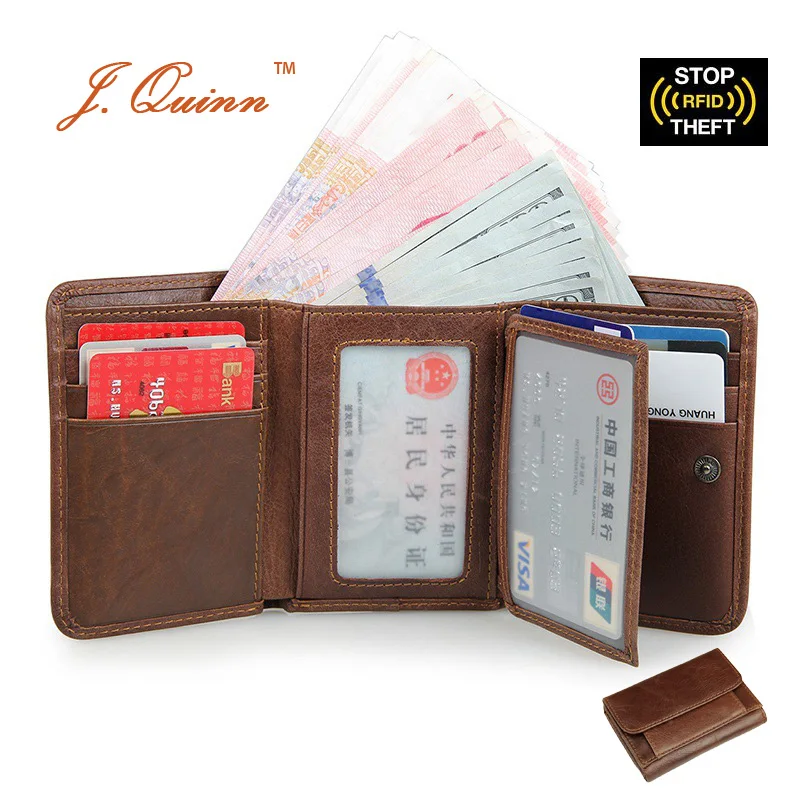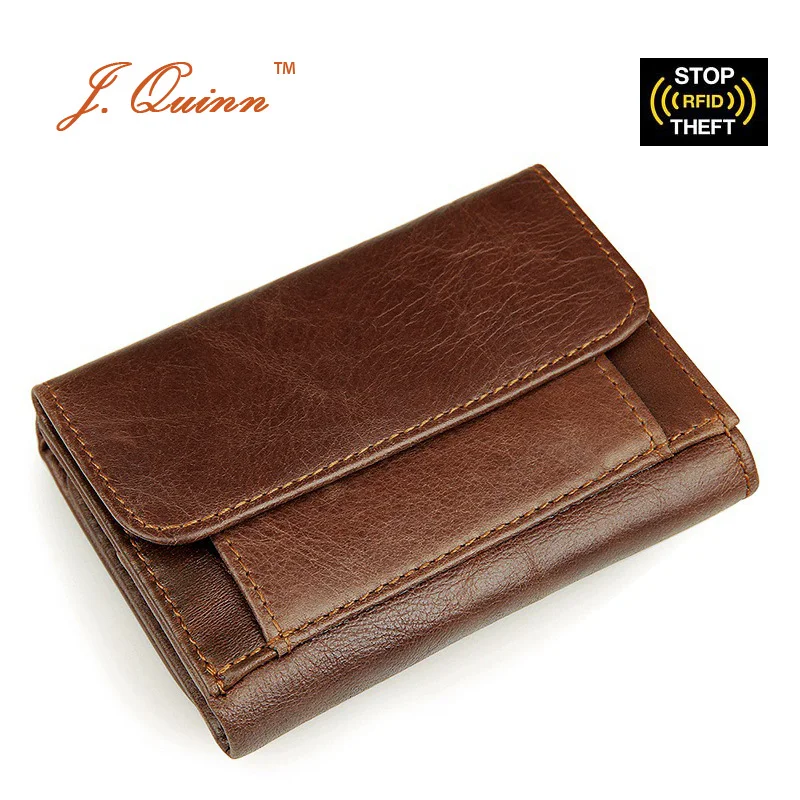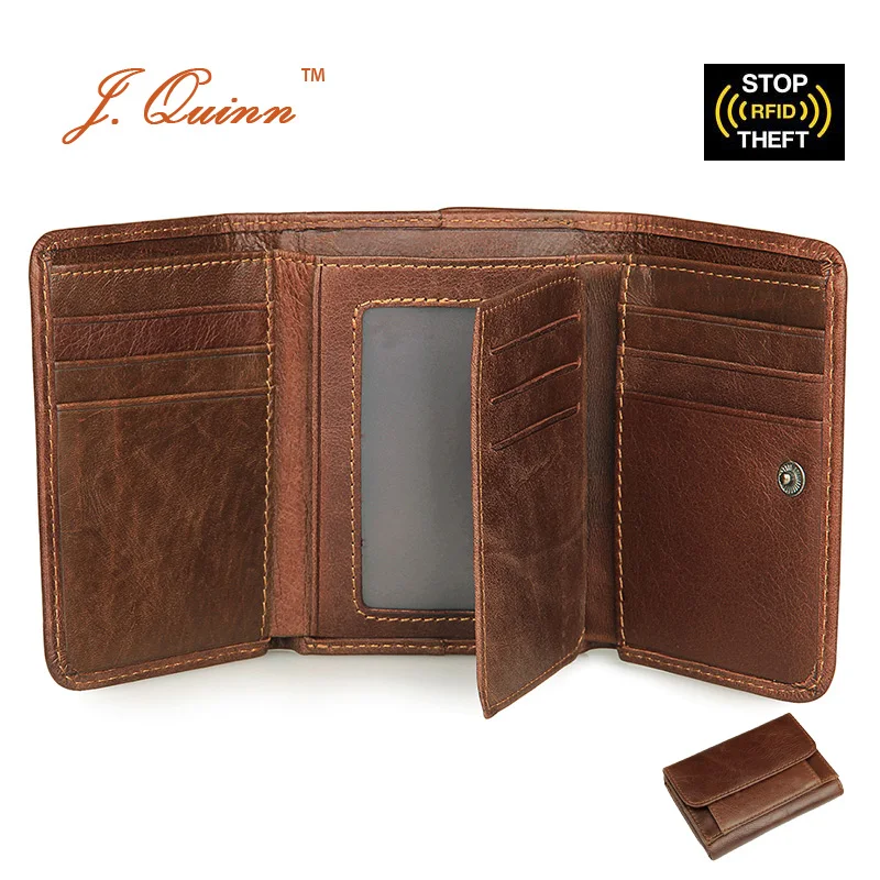 REVIEW TOP SELLER J.Quinn 2017 Coin Trifold RFID Wallet 9 Card Leather Genuine Crazy Horse Men Women Wallets Credit C
