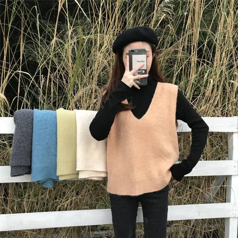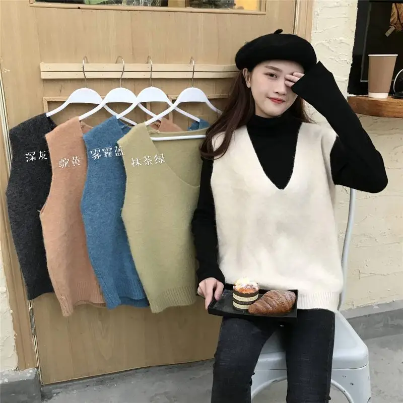 TOP Net Price Photo Shoot + 5 New Style Vest Korean-style Loose-Fit V-neck Short Sleeveless Waistcoat S